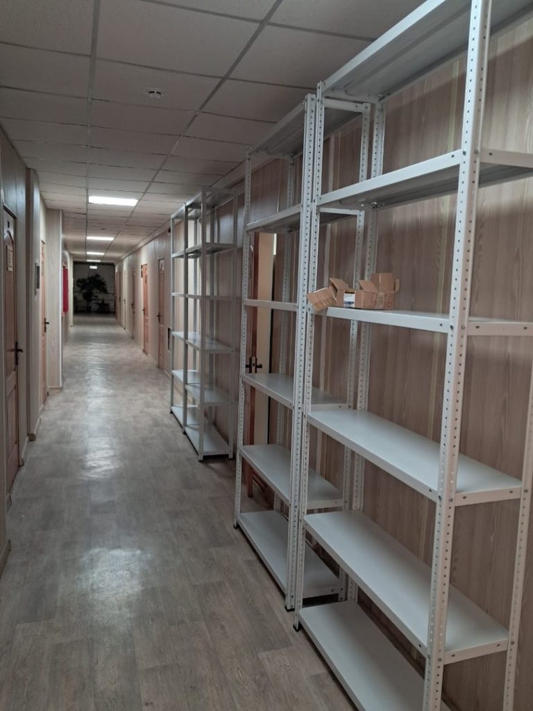В г. Алматы для ТОО «EV Solutions» мы установили 4 металлических стеллажа МС-750 высотой 2400 мм, каждый с 6 полками 300×1000 мм.